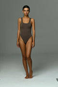Este body elegante evoca la estética clásica de un maillot de ballet, reinterpretado con un aire sofisticado y femenino. Presenta un escote cuadrado que enmarca delicadamente el busto, aportando un toque de sencillez y refinamiento. La parte trasera se realza con cintas finas cruzadas, que dibujan un juego visual elegante sobre la espalda, recordando los lazos de las zapatillas de ballet. Su corte tipo corsé estiliza la silueta, con costuras estructuradas que definen la figura y aportan soporte, evocando la delicadeza del vestuario escénico con un giro moderno y sensual.